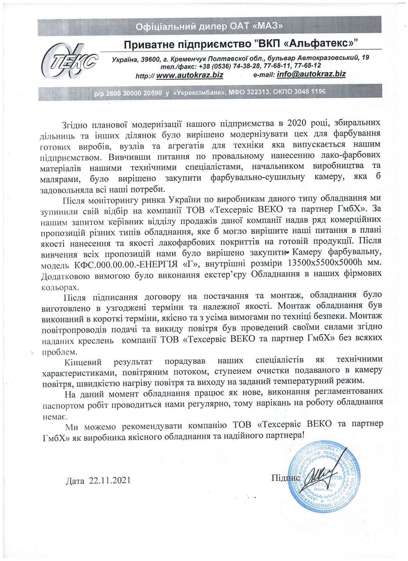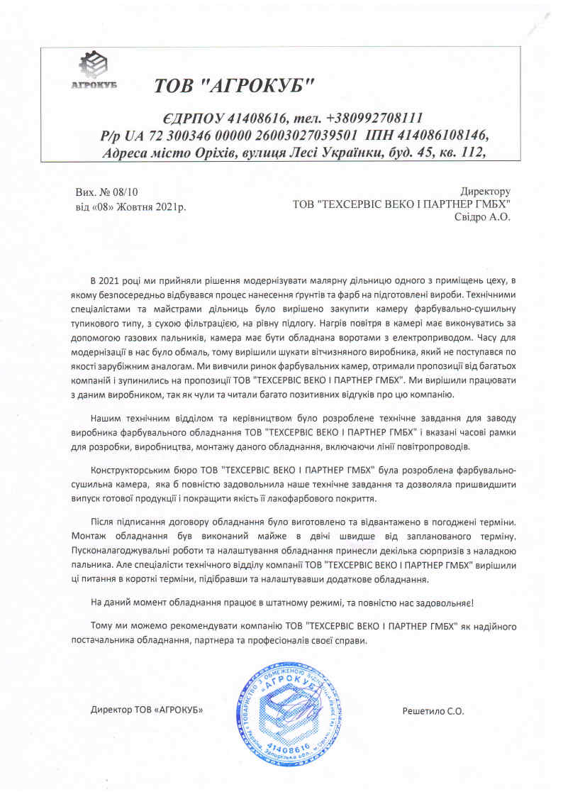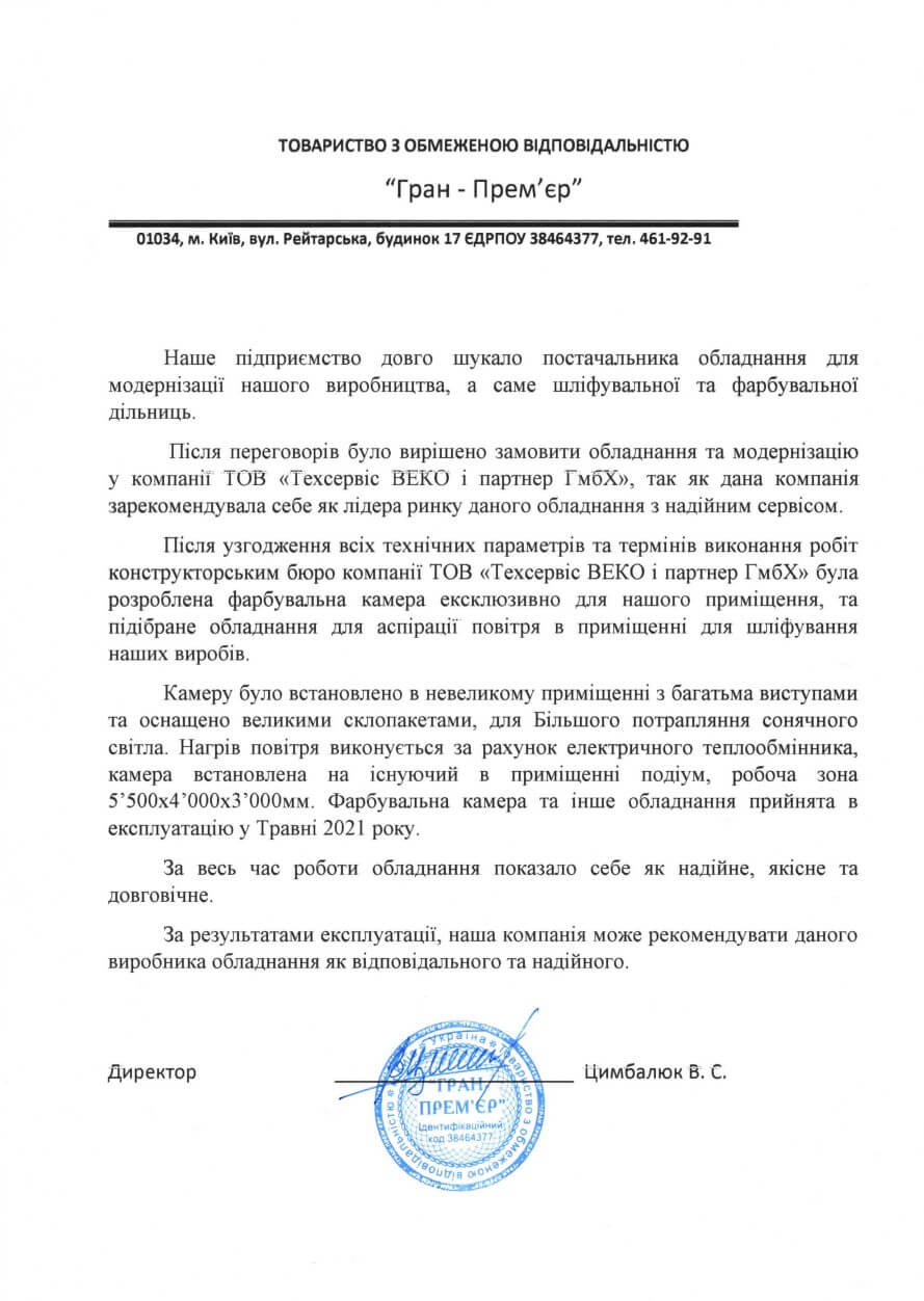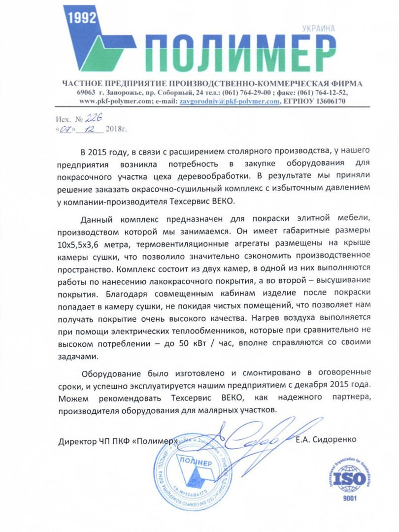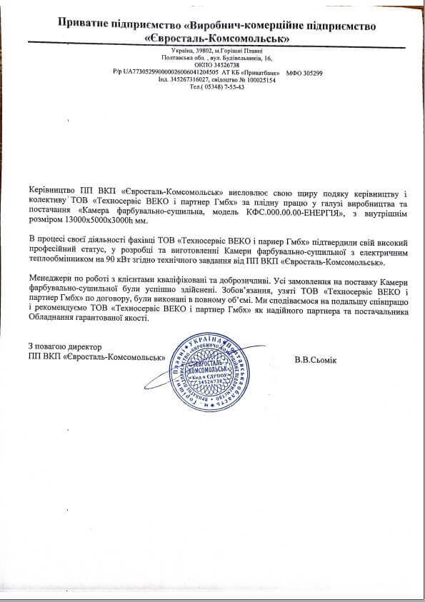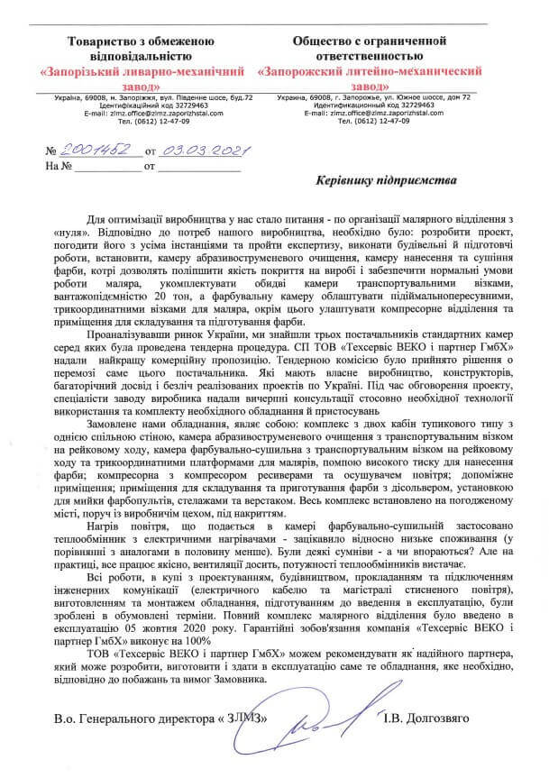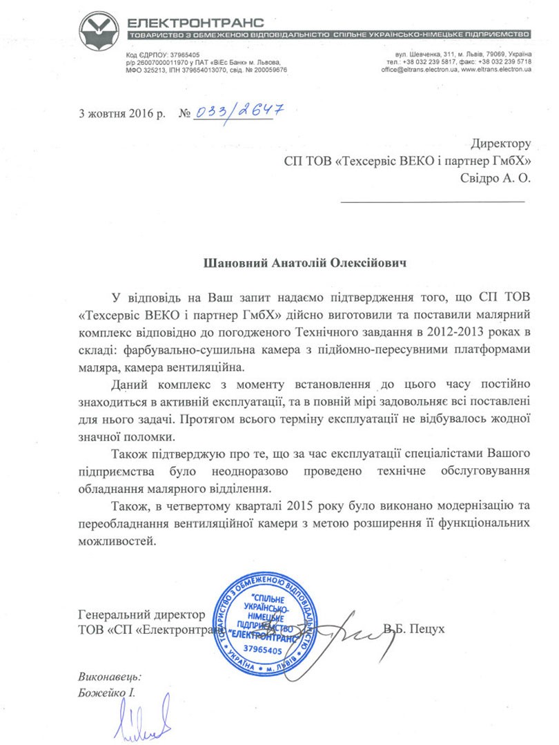 Spokojený zákazník je ukazatelem dobře odvedené práce, a vděčný spokojený zákazník je ukazatelem nejlépe odvedené práce. Nám důvěřují při zvyšování efektivity lakovací oblasti. Děkujeme všem za zpětnou vazbu!Generální ředitel: Svidro Anatolij Oleksijovič