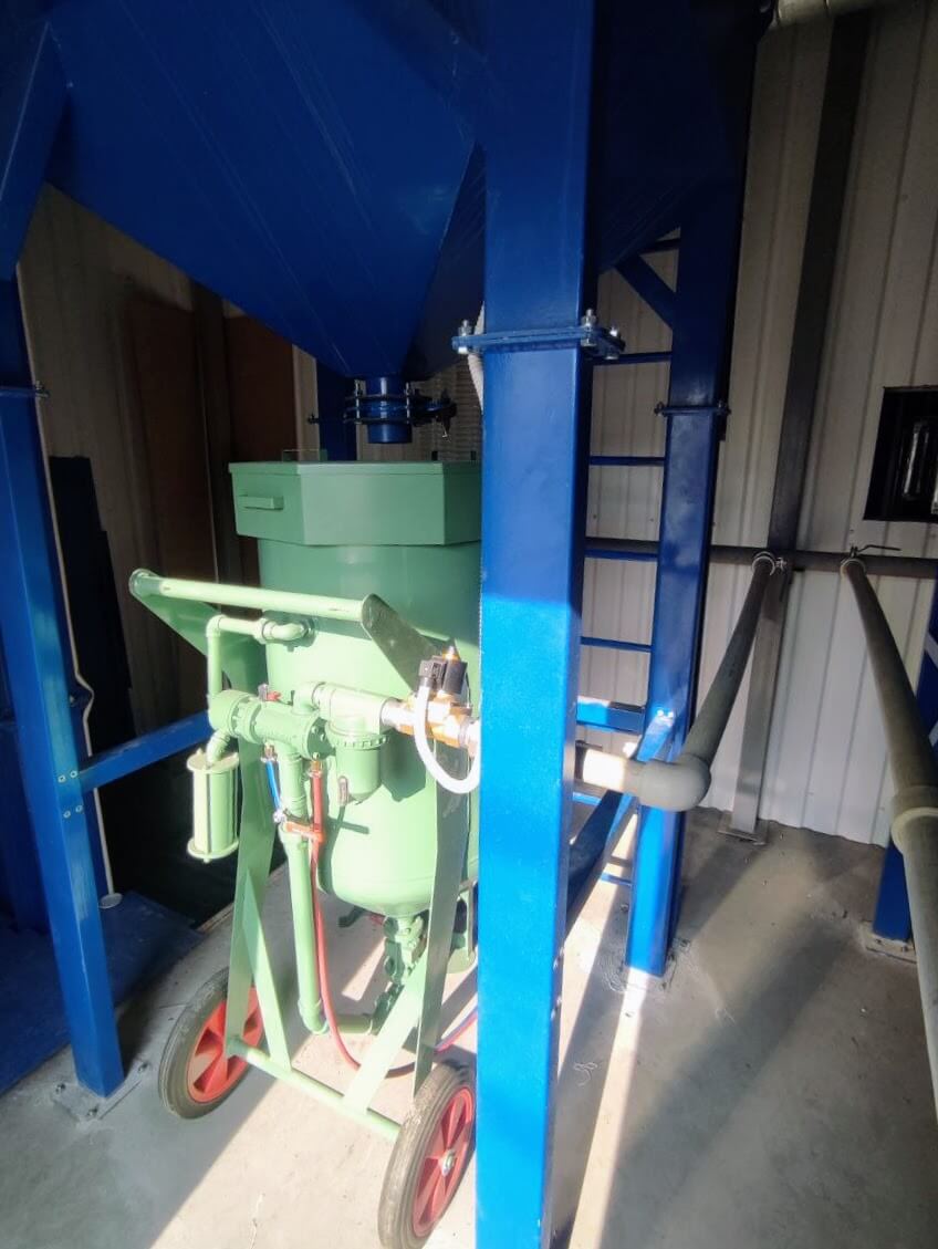 | Systém regenerace abraziva | Zahrnuje korečkový elevátor, separátor drti a zásobník. Separátor mechanicky odděluje prach a nečistoty s návratem čisté drti do cyklu. |