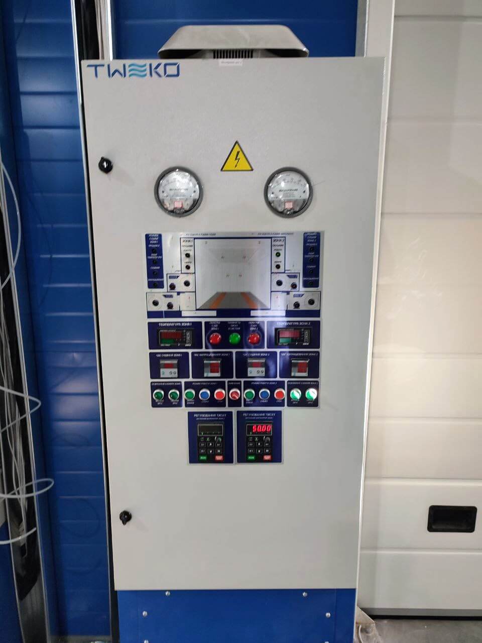 Ovládací panely obsahují frekvenční měniče ventilátorů, tlakové spínače, čidla pracovní a kritické teploty, termostat sušení, počítadlo provozních hodin, stykače a jističe.