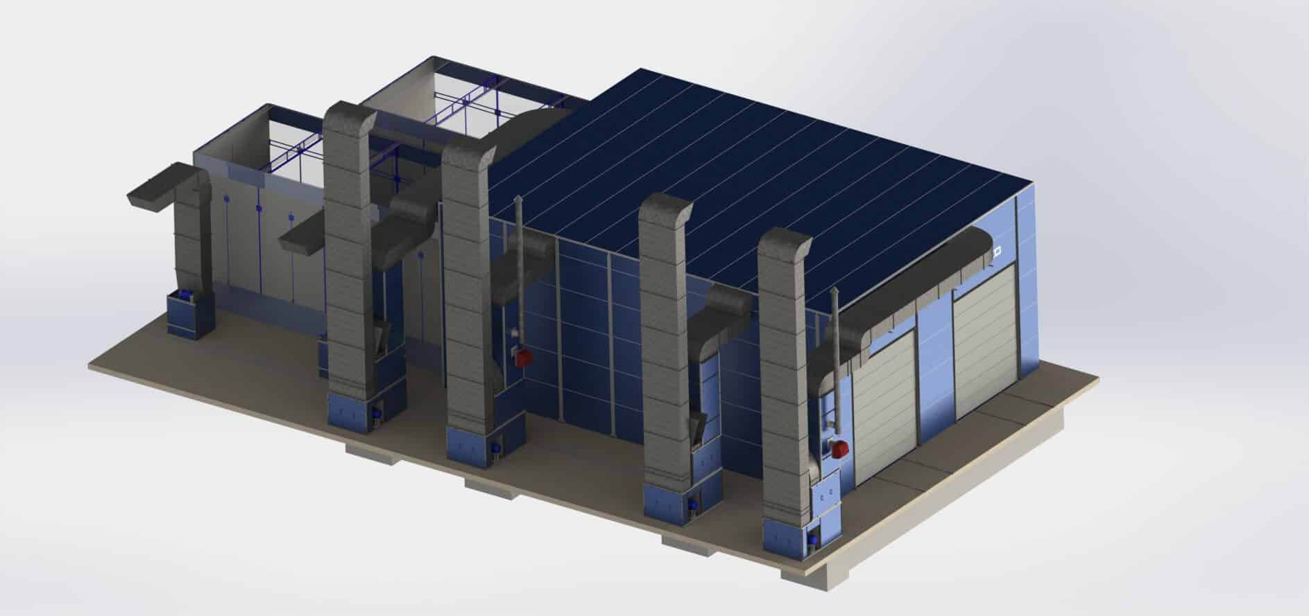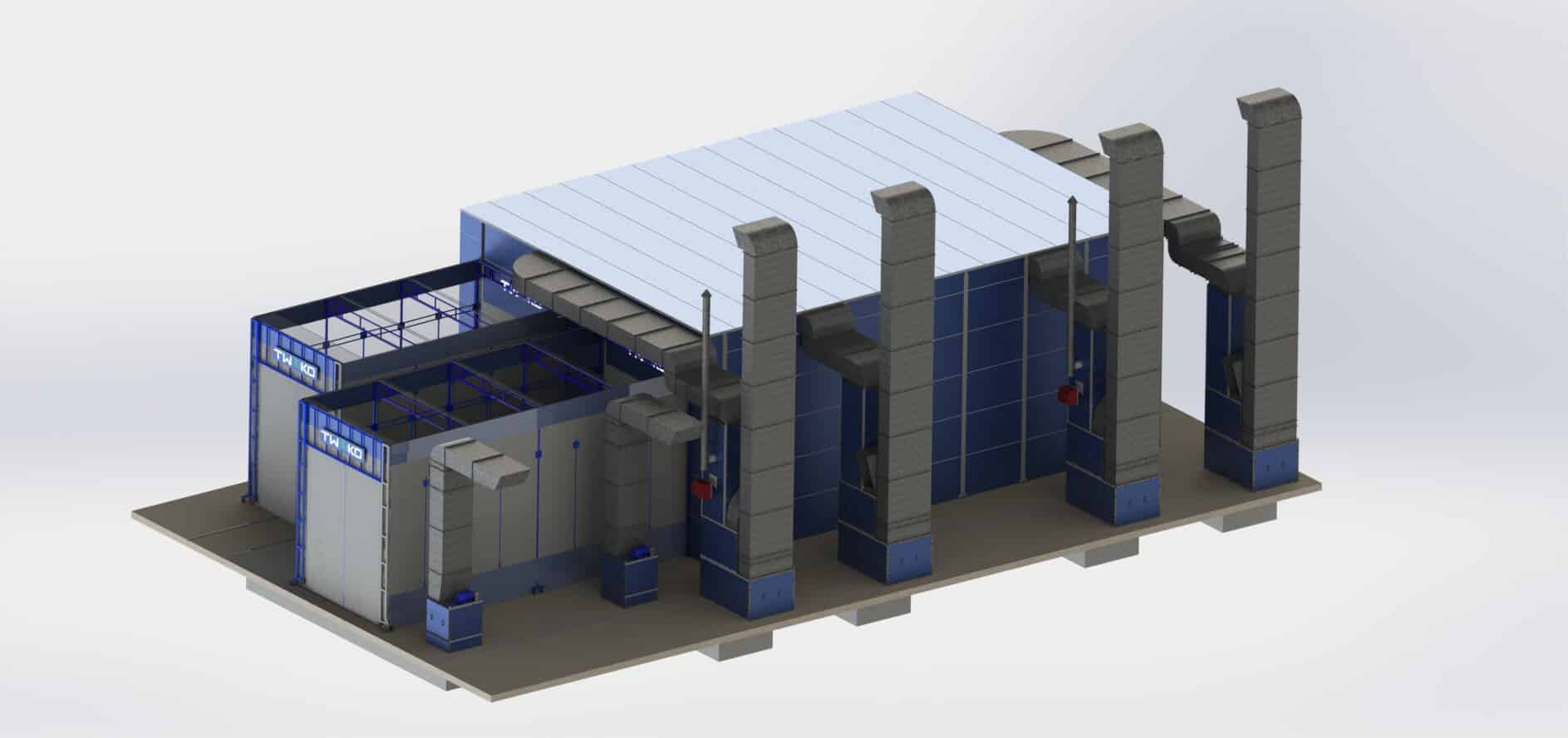 - kresby kabiny tryskací komory KASO-15 (15 000 × 5 000 × 5 000 mm)