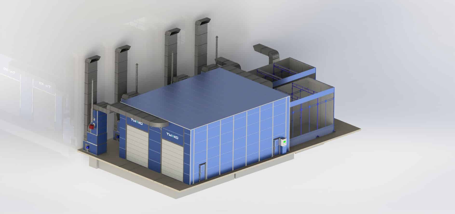 Byl implementován komplexní technologický balík zahrnující tryskací komoru řady KASO od TWEKO, lakovací a sušicí kabiny řady IKFS, mobilní zvedací plošiny řady 3PtO pro bezpečný přístup k horním partiím při lakování a samostatné přípravné stanice APP. Všechny komponenty jsou propojeny do jediného sekvenčního výrobního řetězce: tryskání → příprava → lakování → sušení.