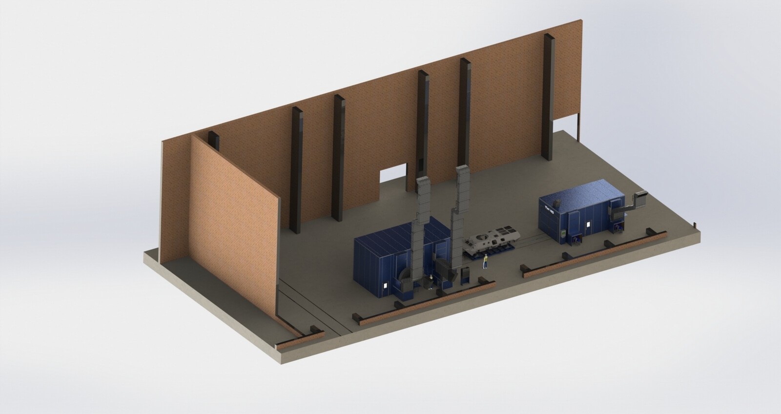 - Příprava podlahy a ventilačních kanálů pro lakovací komoru.
