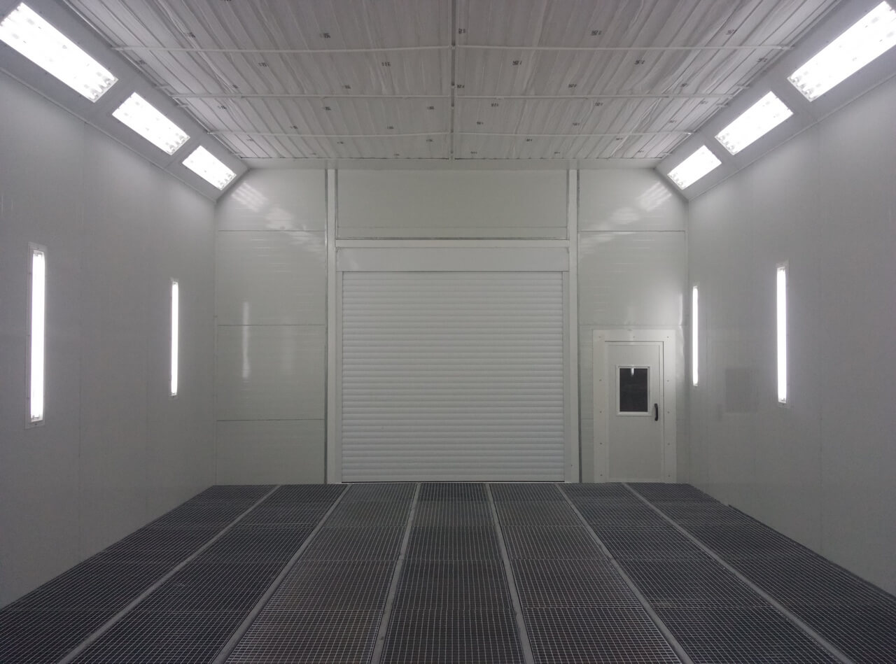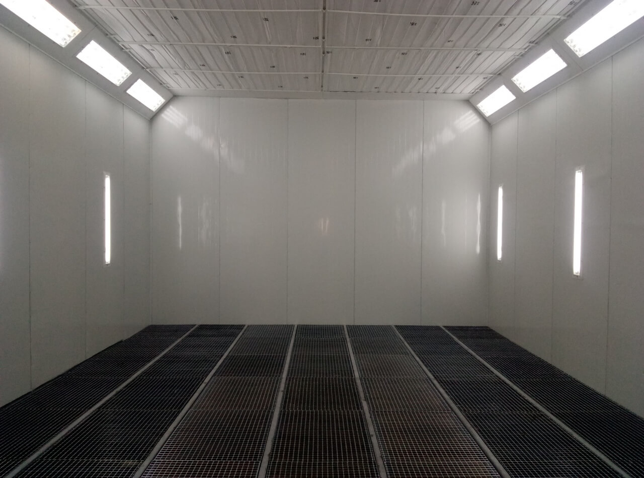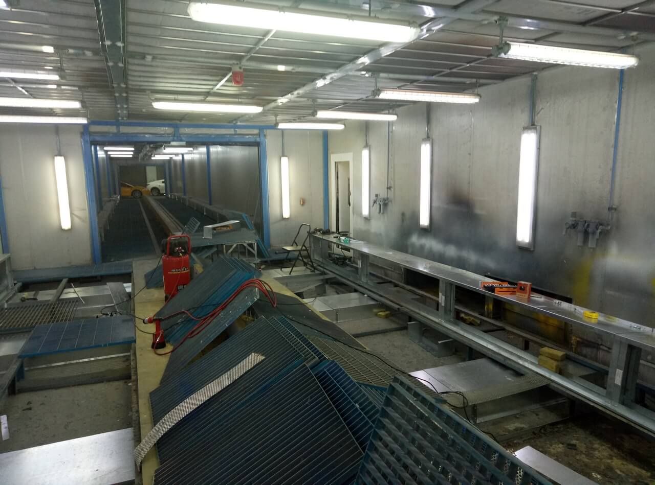 Prvním krokem rekonstrukce byla modernizace stávajícího lakovacího boxu. Dodali jsme kompletní vybavení pro zlepšení ventilace a filtrace vzduchu, soupravu stěnových a stropních svítidel a také servisní dveře. Tento komplex vybavení umožnil vytvořit potřebnou výměnu vzduchu a zajistit odpovídající rychlost vzduchu v pracovní zóně na úrovni 0,2 m/s, a rovněž výrazně zlepšit kvalitu čištění vzduchu v boxu a osvětlení pracovní oblasti.