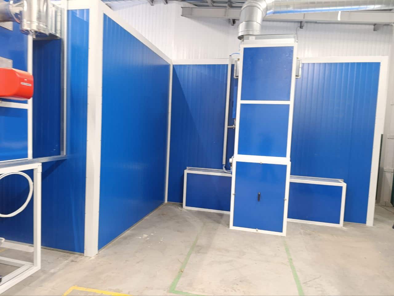 Celé lakovací a sušicí zařízení bylo přizpůsobeno podmínkám výrobního prostoru zákazníka s ohledem na dispoziční řešení, napojení na technické sítě a požadavky na montáž na připravený základ.