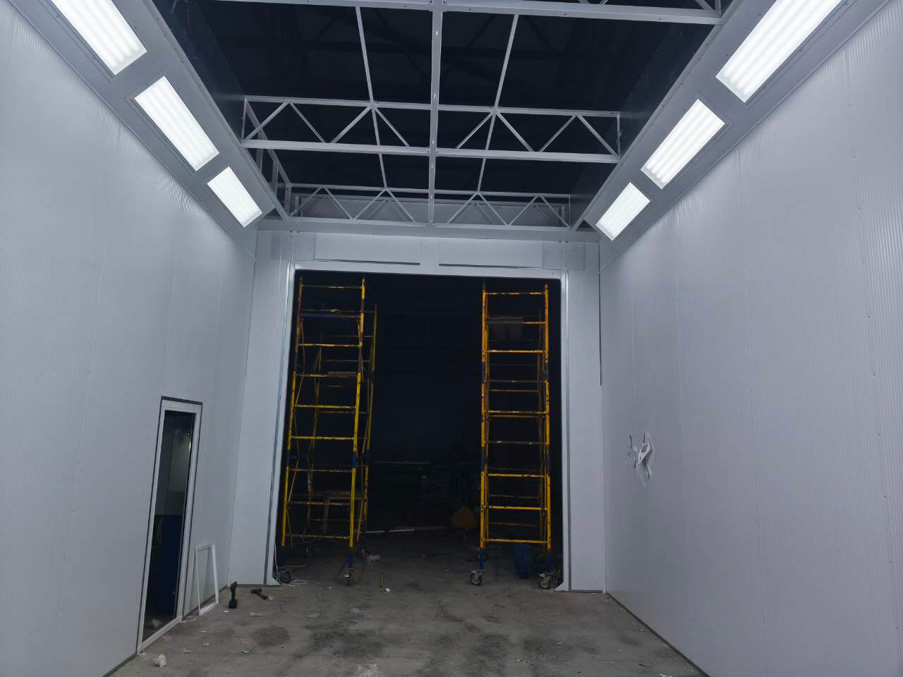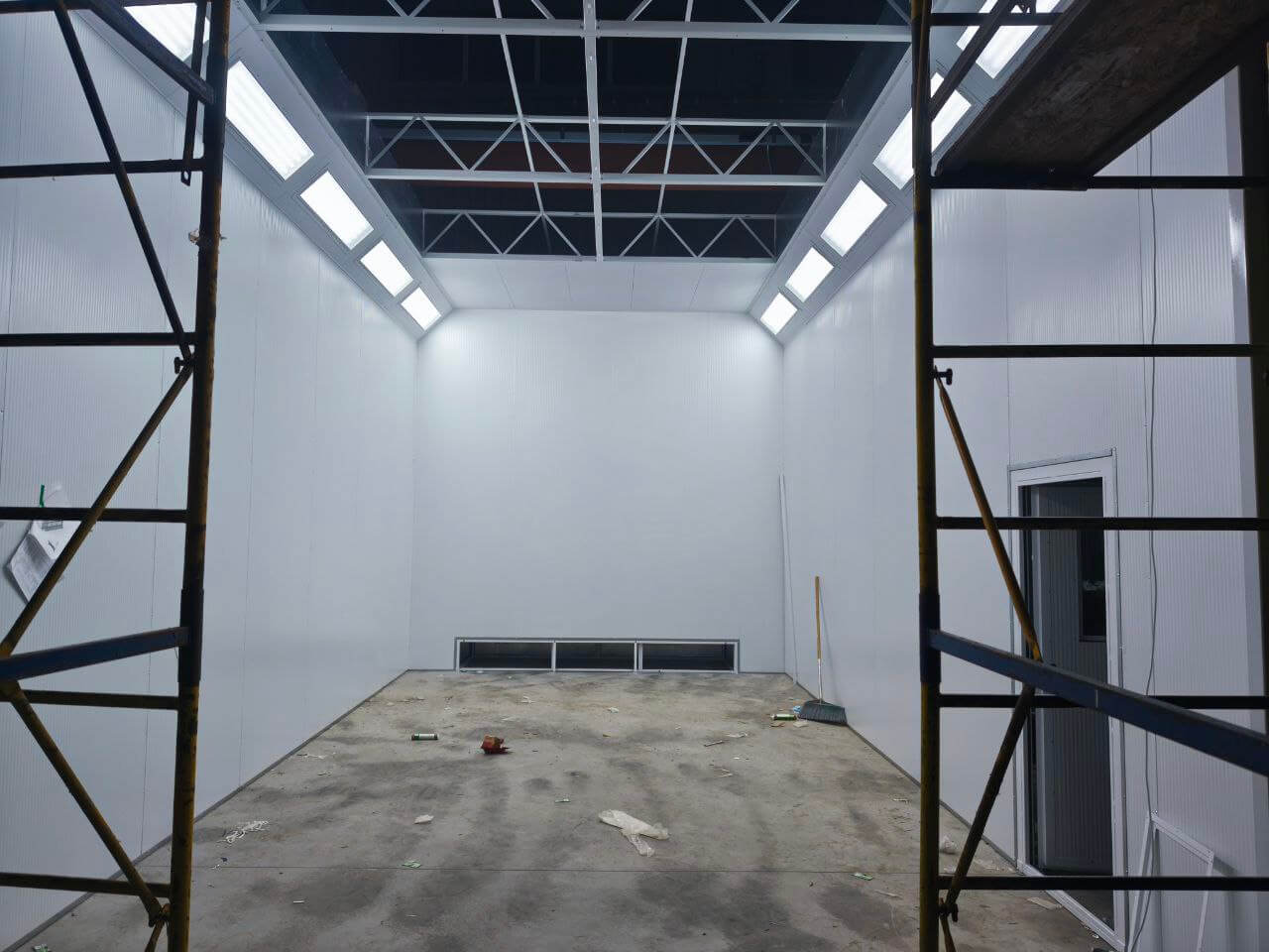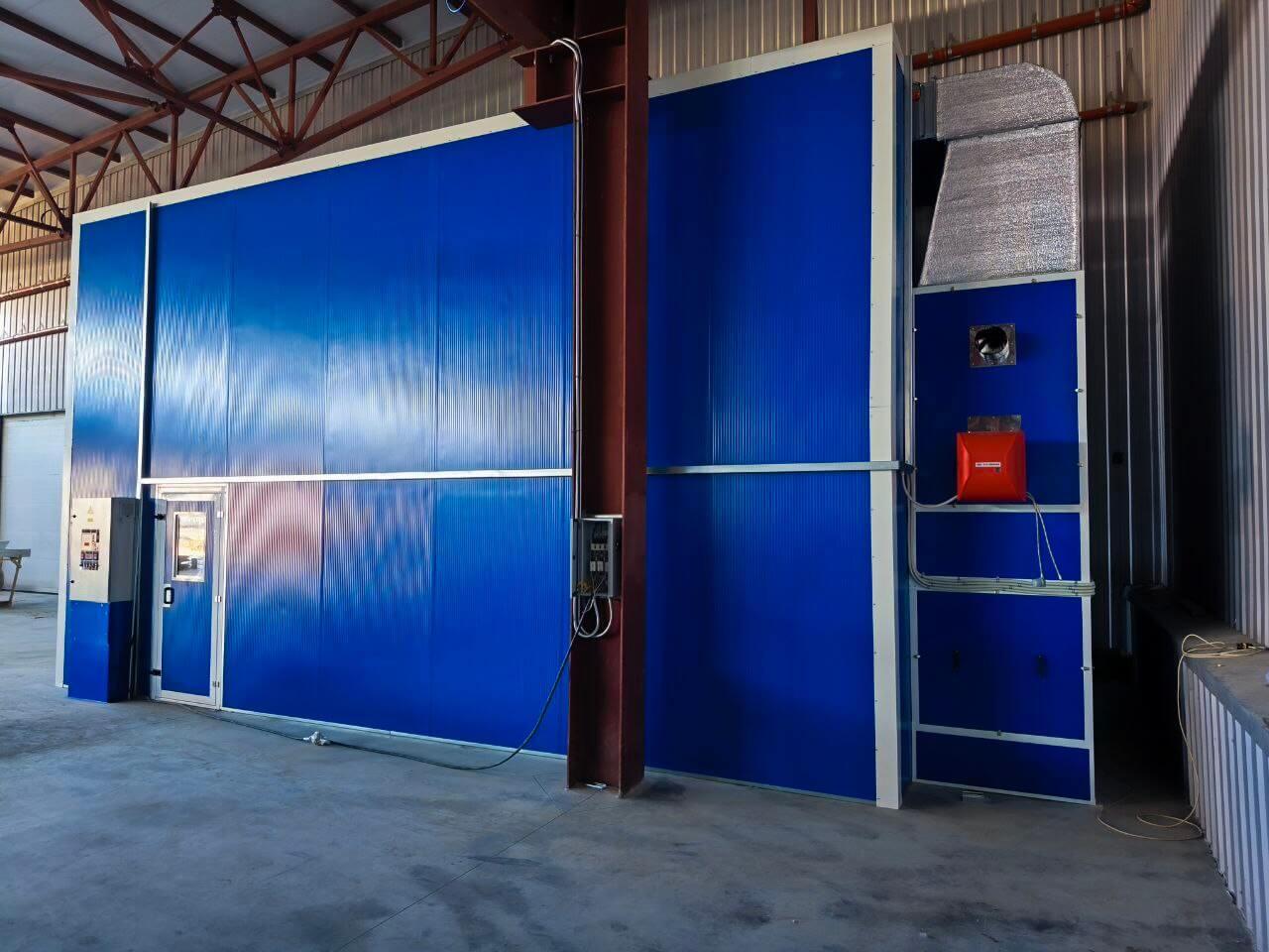 - Výkonné větrání: Přívodní a odvodní systém s filtrací zajišťuje čistotu vzduchu a efektivní odstraňování lakovací mlhy;
