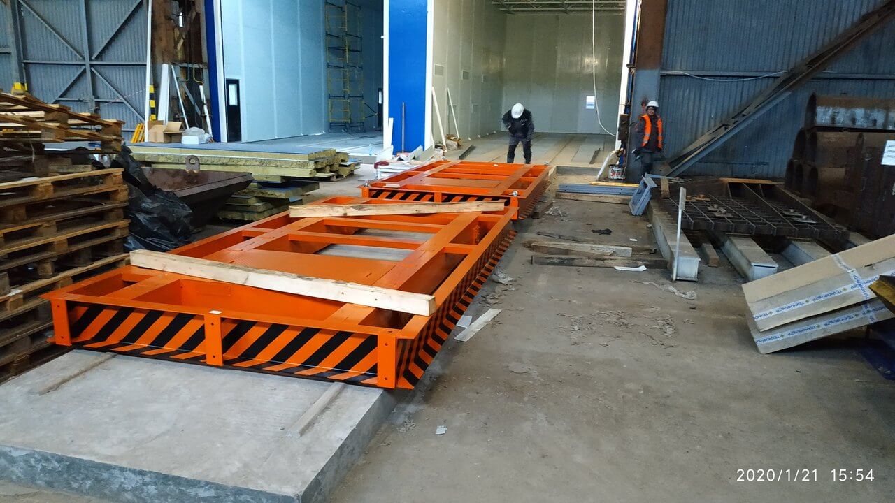 Dalším krokem po návrhu bylo provedení stavebních a montážních prací – bylo nutné demontovat betonový základ do hloubky 1,5 metru a poté vybudovat základovou desku pro instalaci zařízení s vestavěnými technologickými příkopy pro ventilaci a provoz zařízení, kolejovou cestou pro dopravu výrobků do pracovních zón kamer.