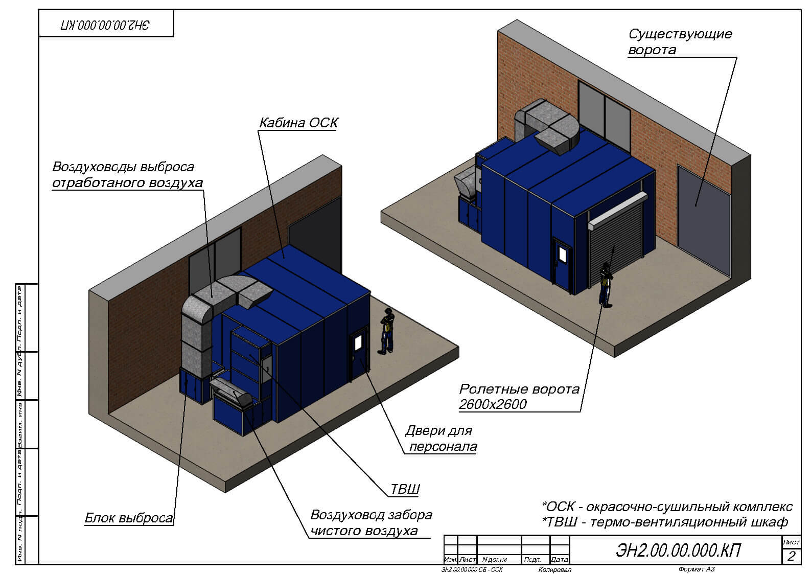 Charakteristickým rysem tohoto lakovacího a sušícího komplexu je použití 30 silnovrstvých elektrických jednotek pro ohřev vzduchu s celkovým výkonem až 60 kW/h. Komora byla instalována mimo hlavní výrobní prostor — na otevřené ploše, na předem připravený rovný podklad.