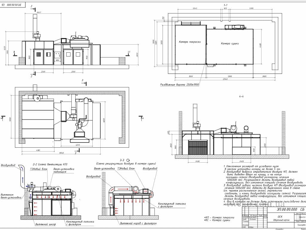- Lakovací komora: Zóna pro nanášení nátěrů s optimálními podmínkami osvětlení a ventilace.