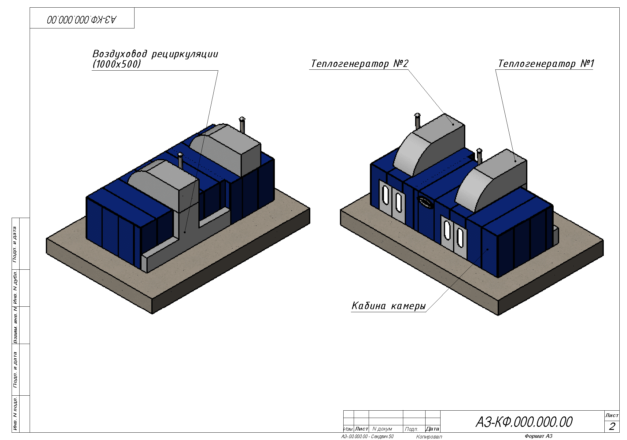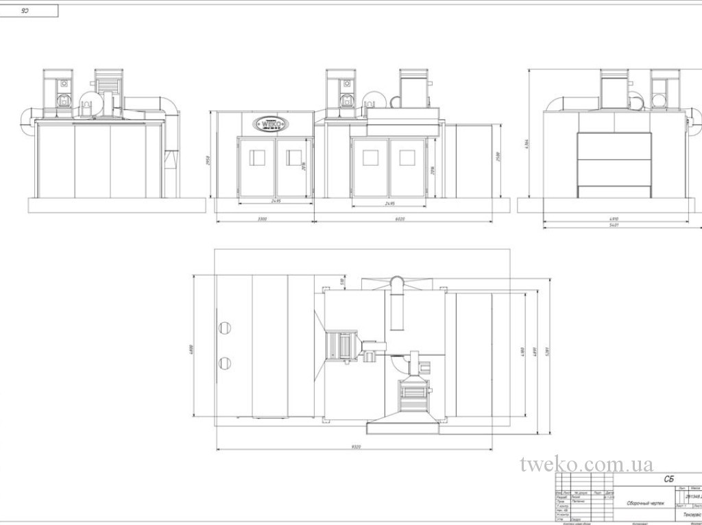 Žádost od LLC „AZ MDF Ltd“ byla předložena v roce 2013, což odráželo potřebu společnosti po moderním řešení pro nanášení a sušení lakovarského nátěru na nábytkové výrobky. TWEKO zahájila práci s podrobnou analýzou výrobních potřeb podniku s ohledem na specifika výroby desek MDF a požadavky na povrchovou úpravu. Na základě této analýzy byl navržen individuální malovací a sušicí komplex s ventilací, skládající se z malířské komory a sušicí komory, každá s vnitřními rozměry 5×4×2,4 m. Zvláštní pozornost byla věnována přizpůsobení ventilačních systémů, včetně výsuvné skříně s hydroekránem (o rozměrech 2’350×500×2’000 mm) pro efektivní odvod vzduchu v zóně malování, a režimům recyklace v sušicí komoře s částečnou obnovou vzduchu (do 20 %) pro úsporu energetických zdrojů. Ohřev vzduchu byl realizován naftovým palivem, což odpovídalo technickým možnostem objednatele. Komplex, integrován do společné kabiny o rozměrech 9’500×4’500×2’200 mm s třemi dveřmi (skládacími 2’000×2’000 mm pro vstup/výstup a posuvnými pro přechod), byl vyroben z sendvičových panelů s bazaltovým výplňovým materiálem (tloušťka 50 mm). Nad sušicí komorou byly instalovány termoventilační skříně (TVC), pro které byla vybudována montážní plošina s opěrnými farmami. Projekt byl dokončen v březnu 2013, což zajistilo včasné uvedení komplexu do provozu a soulad se stanovenými výrobními požadavky.