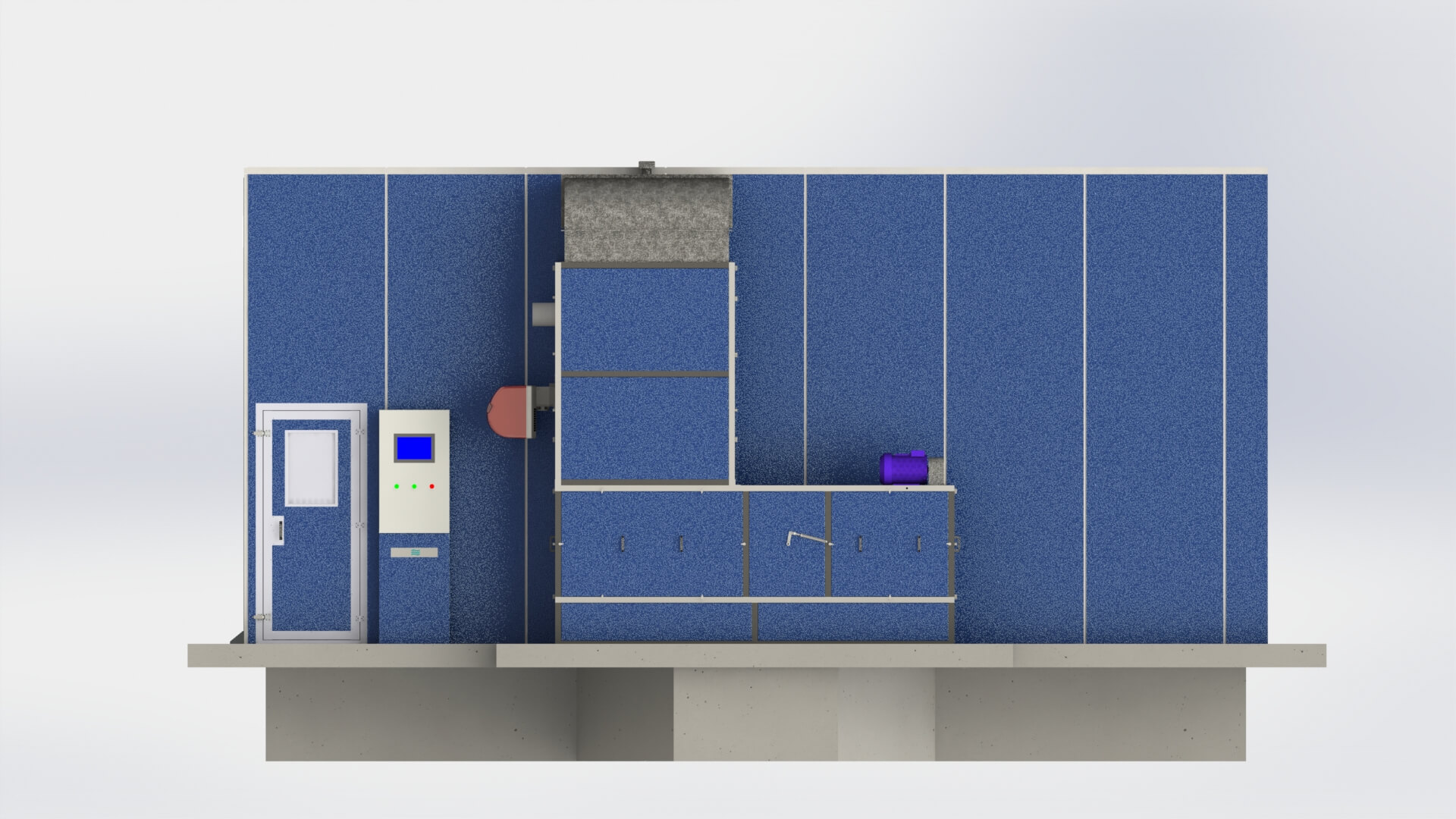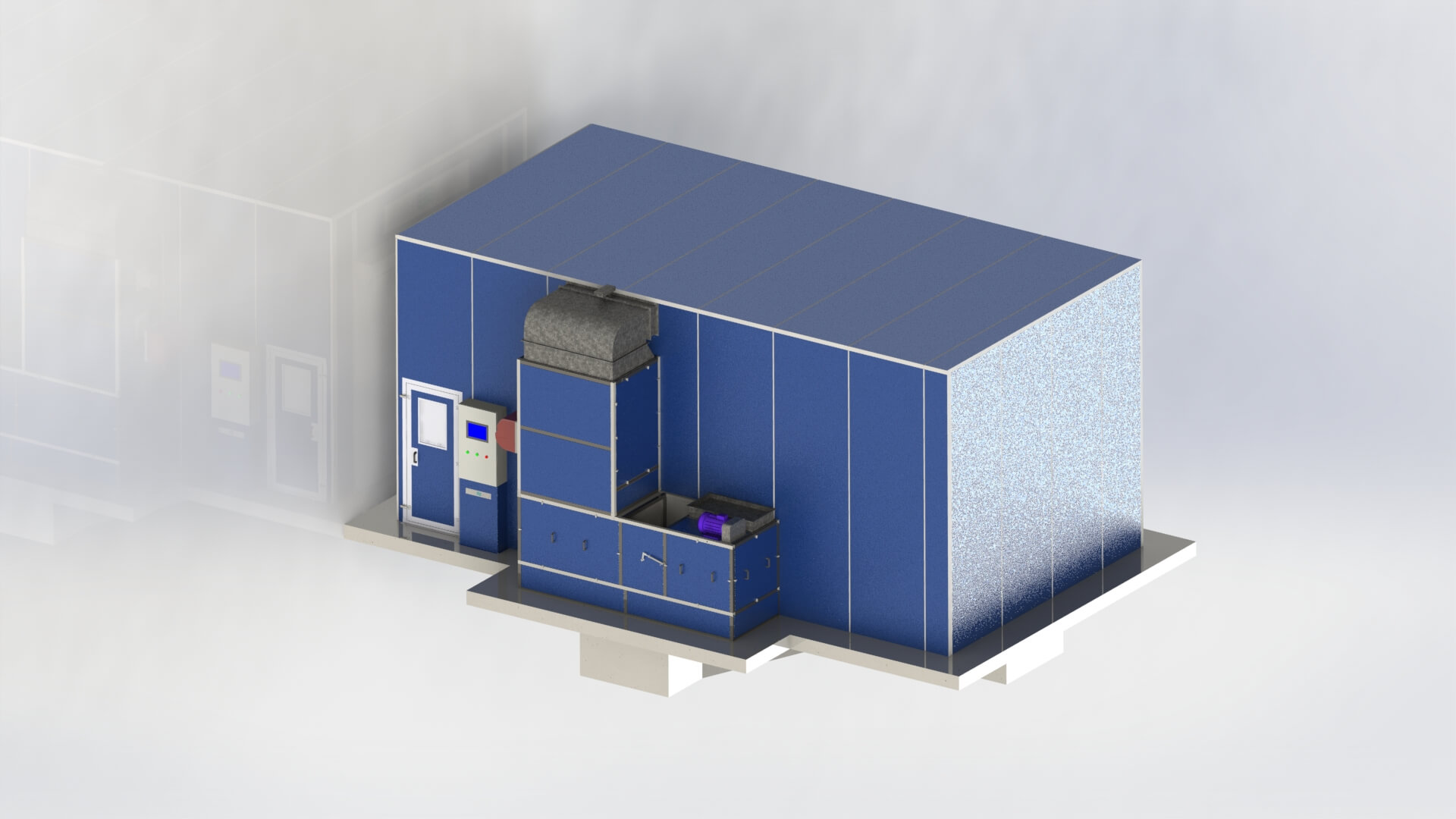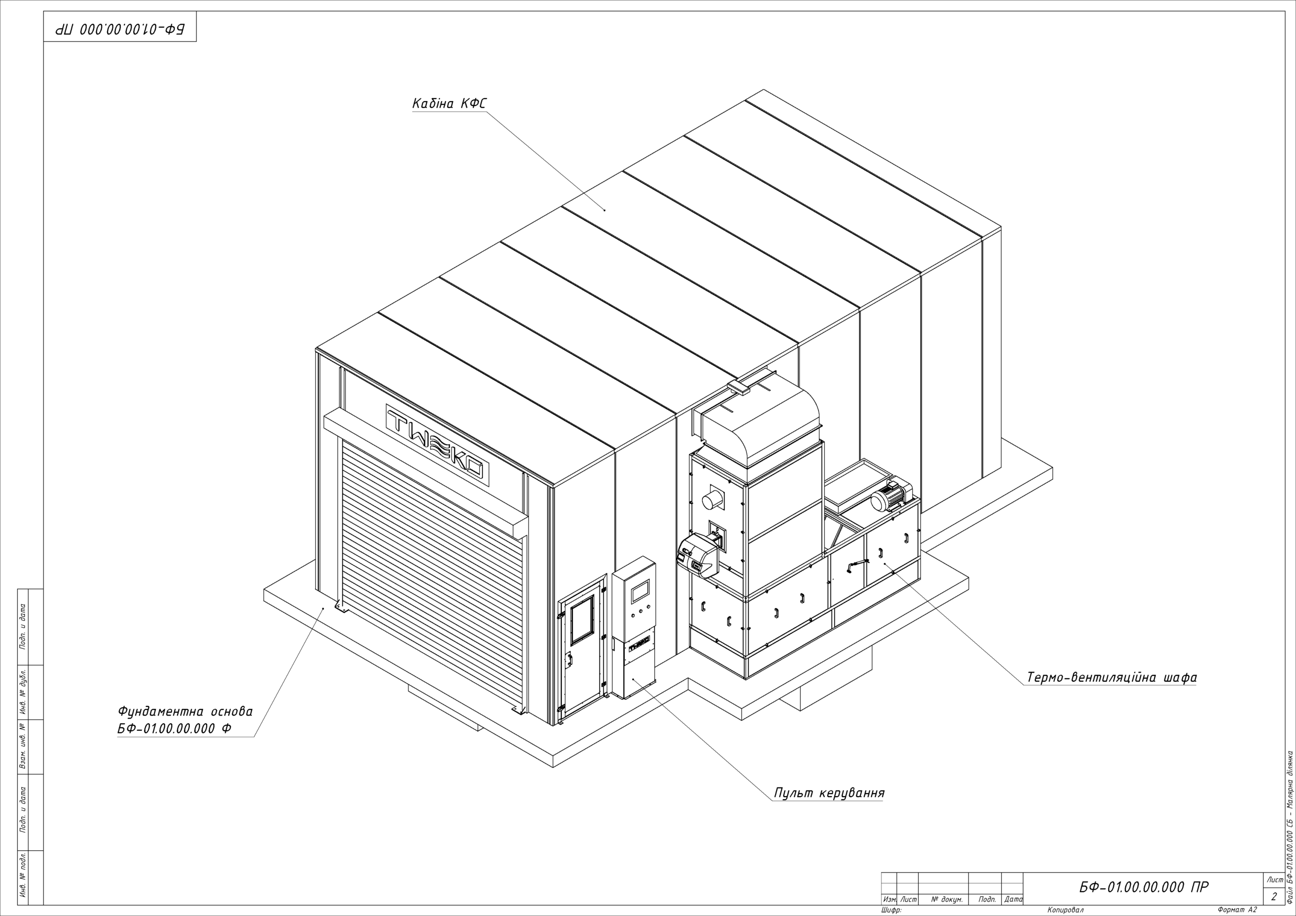 Práce začaly v březnu 2025 po schválení vizualizace a technické specifikace. Kvůli absenci připraveného základu tým TWEKO vypracoval individuální výkresy pro pódium a připravil kompletní sadu konstrukční dokumentace: výkresy bloku ventilační jednotky, výměníku tepla, hořáku, rámu roletových vrat, stropu, kabiny KFS a filtračních kazet.