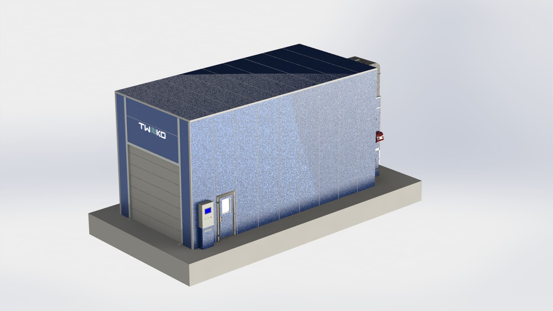 Společnost TWEKO nabídla nátěrovou a sušící kabinu modelu IKFS-D-10 ze série IKFS Diagonal. Diagonální proudění vzduchu zajišťuje rovnoměrné rozložení vzdušného toku, snižuje turbulenci a garantuje kvalitní nanesení nátěru na velkorozměrovou techniku v pracovním prostoru o rozměrech 10000×5000×5000 mm.