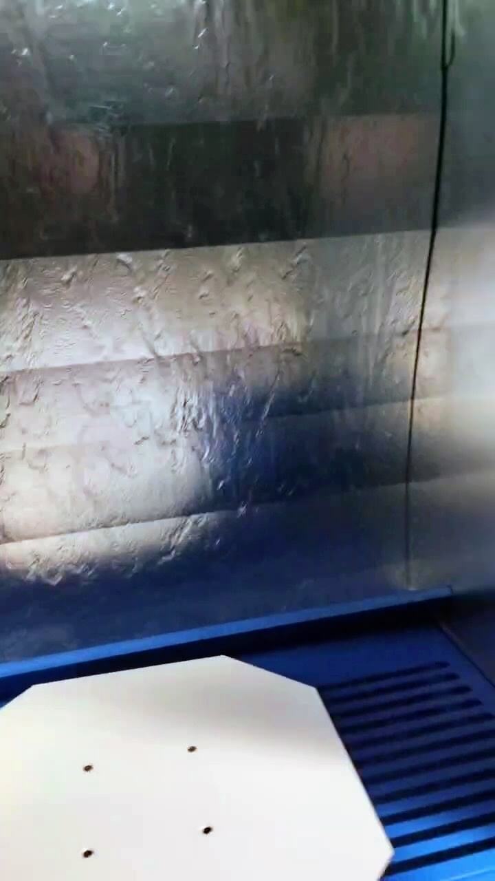 - Odsávací skříň s vodní clonou pro zachycení aerosolových částic.