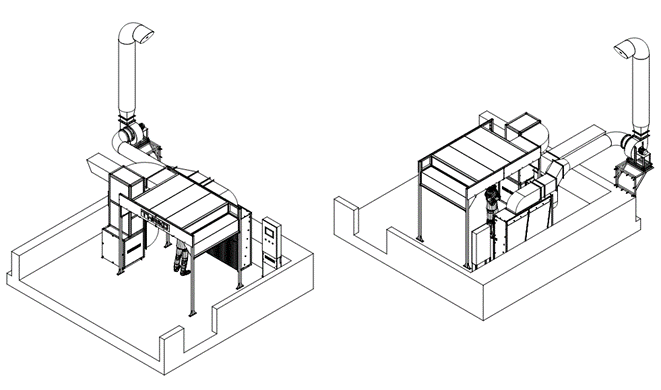 - Zajistit přívod a odtah vzduchu s výkonem až 6000 m³/h pro odvod lakovacího aerosolu