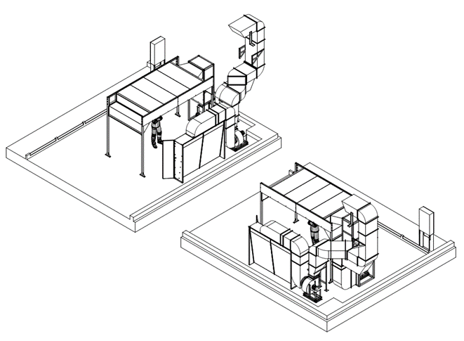 Součástí systému je vícestupňová suchá filtrace, která zahrnuje filtry předběžného a jemného čištění. Toto řešení odpovídá požadavkům moderního vybavení lakoven a zajišťuje vysokou kvalitu průmyslového lakování.