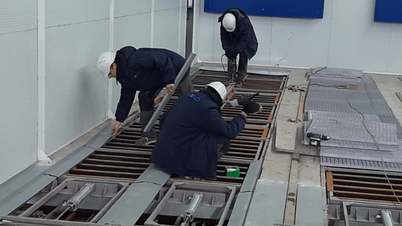Speaking of a visual inspection of the technical condition of the spray booth itself and individual devices, we mean checking the tightness of the entrance gates and doors for personnel, the condition of the air channels and the channels of the exit of combustion products. It is imperative to check all screw connections, if necessary, tighten them. This also applies to screw connections on the heat exchanger and fan housings. After that, we check the condition of the filters and the tightness of the chamber, while paying particular attention to the state of the ceiling filter. Ceiling filters and recirculation filters, as well as preliminary pocket filters, are cleaned every 250 hours of operation, and every 500 hours they are replaced.