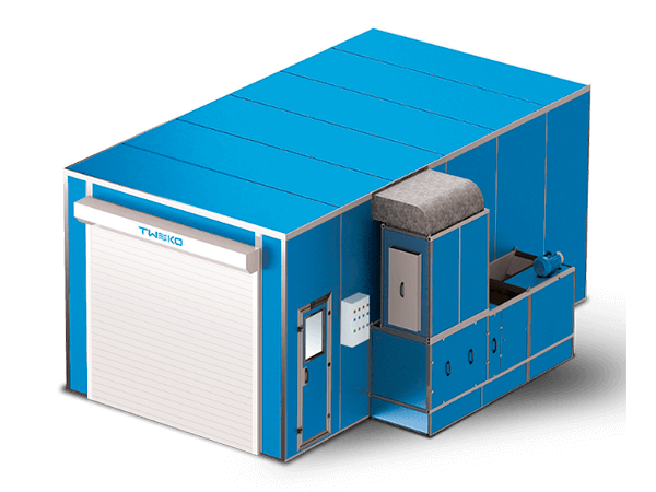 The perimeter of the working area is illuminated by energy-saving powerful LED lamps. The temperature is regulated from the control panel (within 16-24 ° C during the painting process and 20-80 ° C during the drying process). Powerful exhaust system, provides a constant stream of clean, warm air. The spray booth is equipped with an entrance gate and a door for staff.