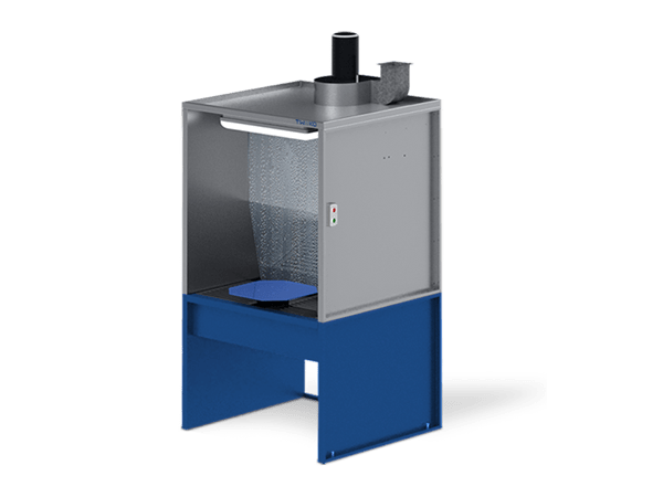The AS Hydro (ASH-1) Extraction Cabinet from TWEKO ensures safe and comfortable conditions for painting operations. Equipped with a three-stage hydraulic filtration system, Paint Stop EU4 filter, rotary table (450×450 mm), and sealed LED light. The perfect solution for paint shop equipment!