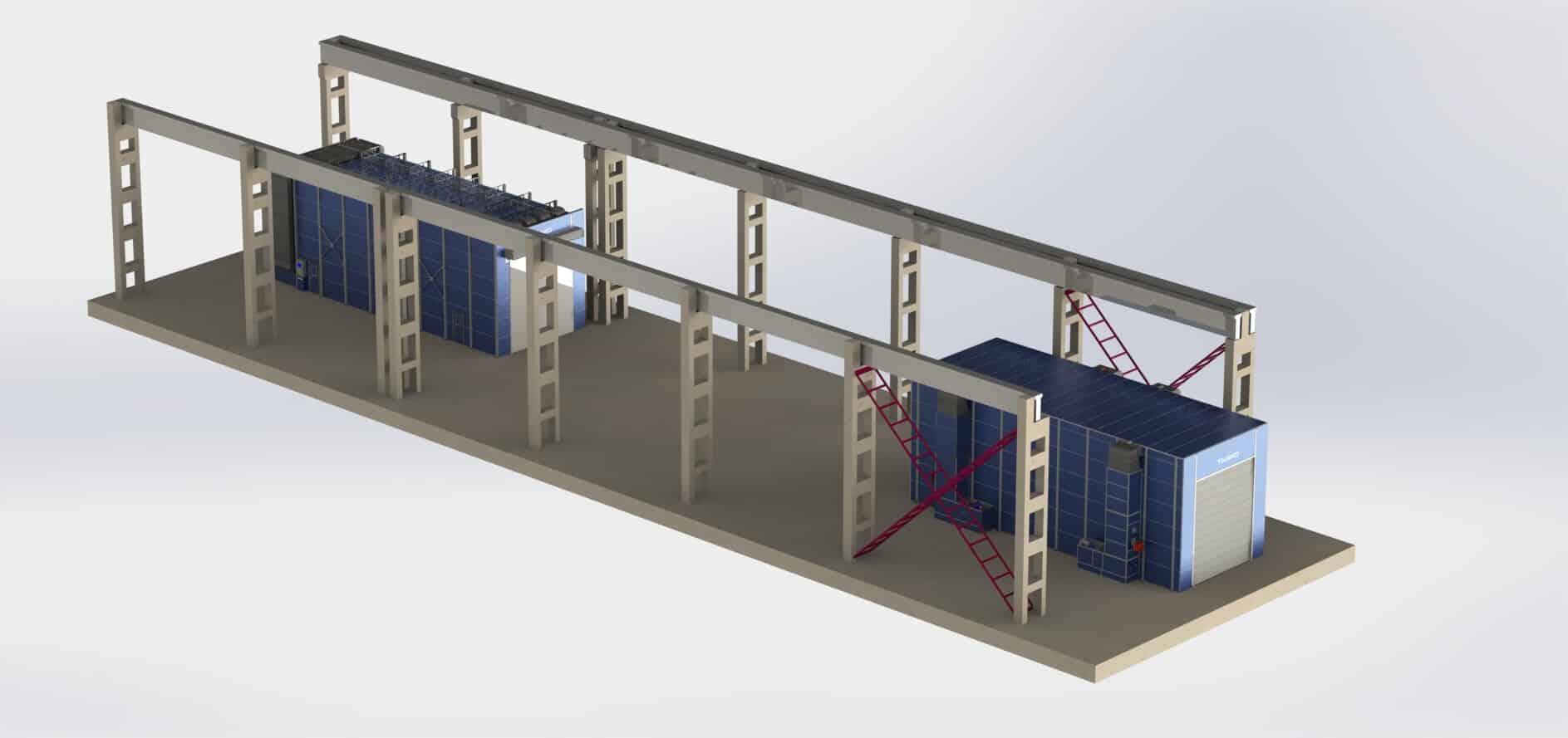 As a result of the project, the customer received a complete set of technological equipment enabling high-quality abrasive blasting, painting, and drying of large-scale metal structures within its own production infrastructure.