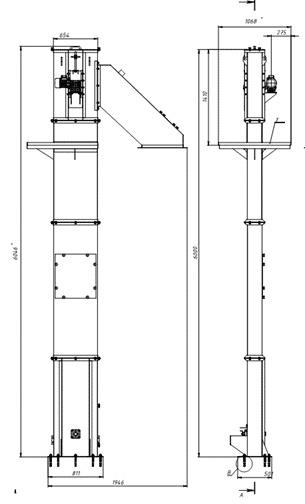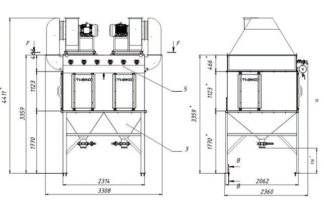 The abrasive blasting chamber is equipped with a mechanized system for collecting and transporting spent abrasive, including scraper floor, bucket elevator, separator, and accumulation hopper. - Ventilation and air exchange organization.