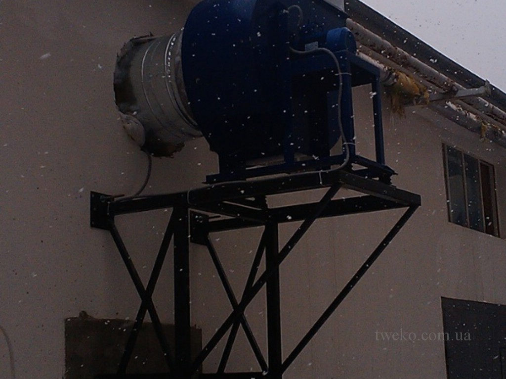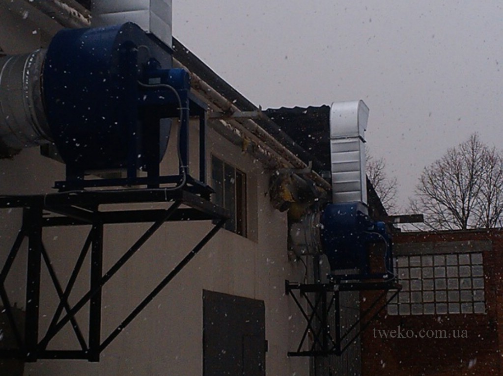 - External ventilation unit. To reduce noise and vibrations, the fan is mounted on the exterior wall of the facility on a vibration-dampening frame, ensuring comfortable conditions in the paint shop.