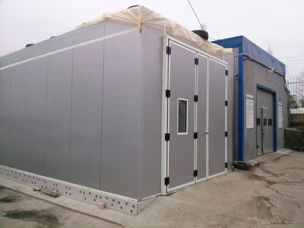 Freestanding painting and drying chamber for trucks and vans designed and manufactured by us for Bosch service in the city of Bila Tserkva, the Kyiv region.