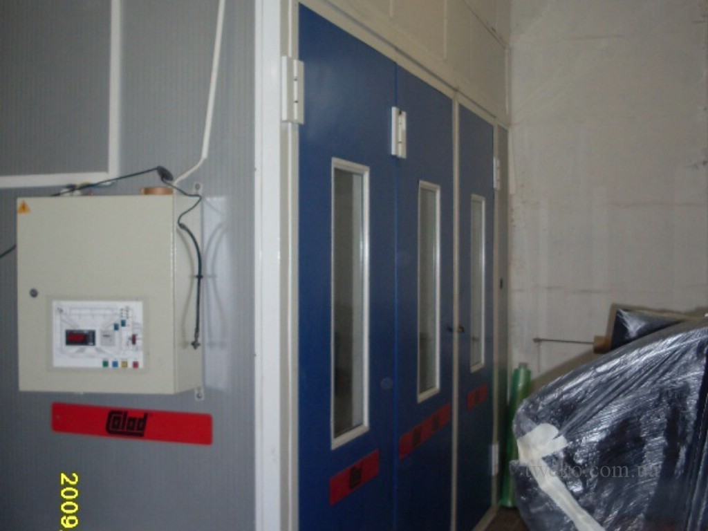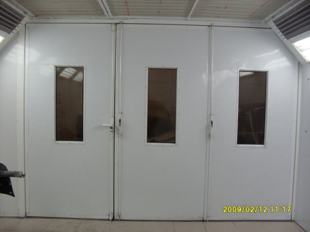 Painting chamber for the use of water-soluble paints in car painting, this chamber is characterized by an increased volume of air exchange to enable the use of water-soluble paints. The chamber is located indoors, on a foundation with built-in air channels, internal size – 7x4x4.7 m, air heating – diesel.