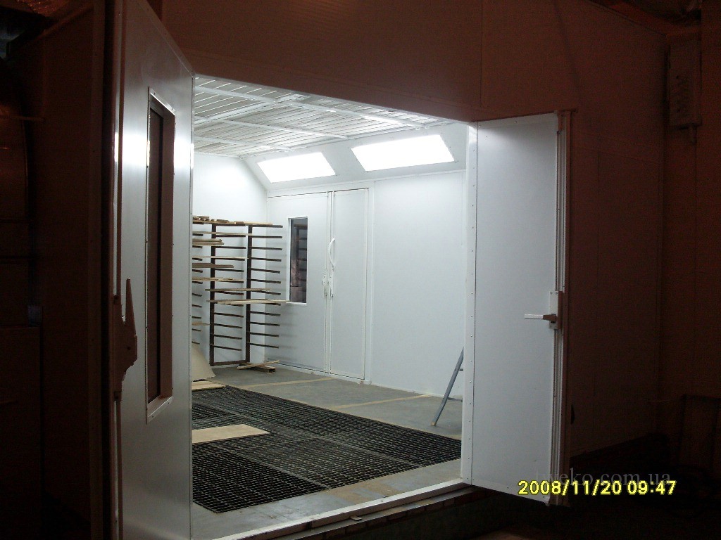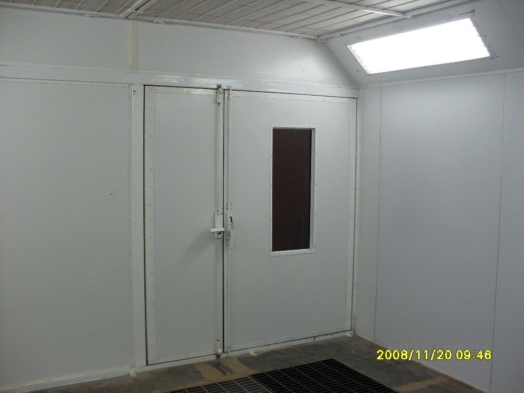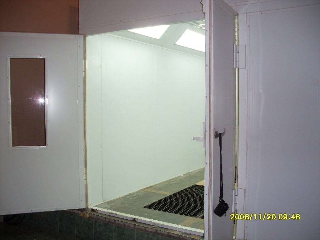 - A paint and drying booth with vertical airflow for effective removal of paint fumes.