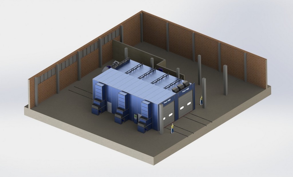 The main feature of this spray booth model is that it has the ability to work in zones. Three separate thermo-ventilation cabinets, in combination with a specially developed automation and control system, allow you to turn on and operate each zone separately from the rest. Thus, the camera has three zones 5x5x5m, and when painting oversized products, camera operators can use only one or two of the zones. Automation and control systems in this design are three times larger, more expensive and more complex than usual, but due to this, when operating the camera, the costs of electricity and natural gas are significantly reduced!