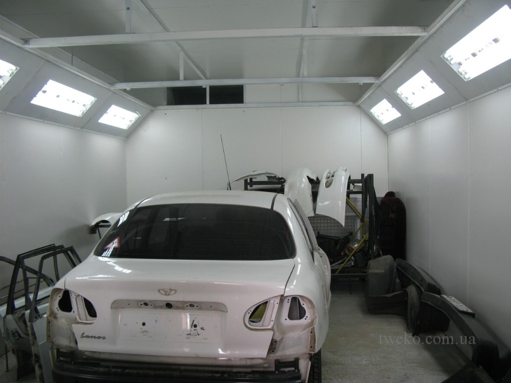 - Installation of a budget painting chamber with optimal dimensions for passenger vehicles.