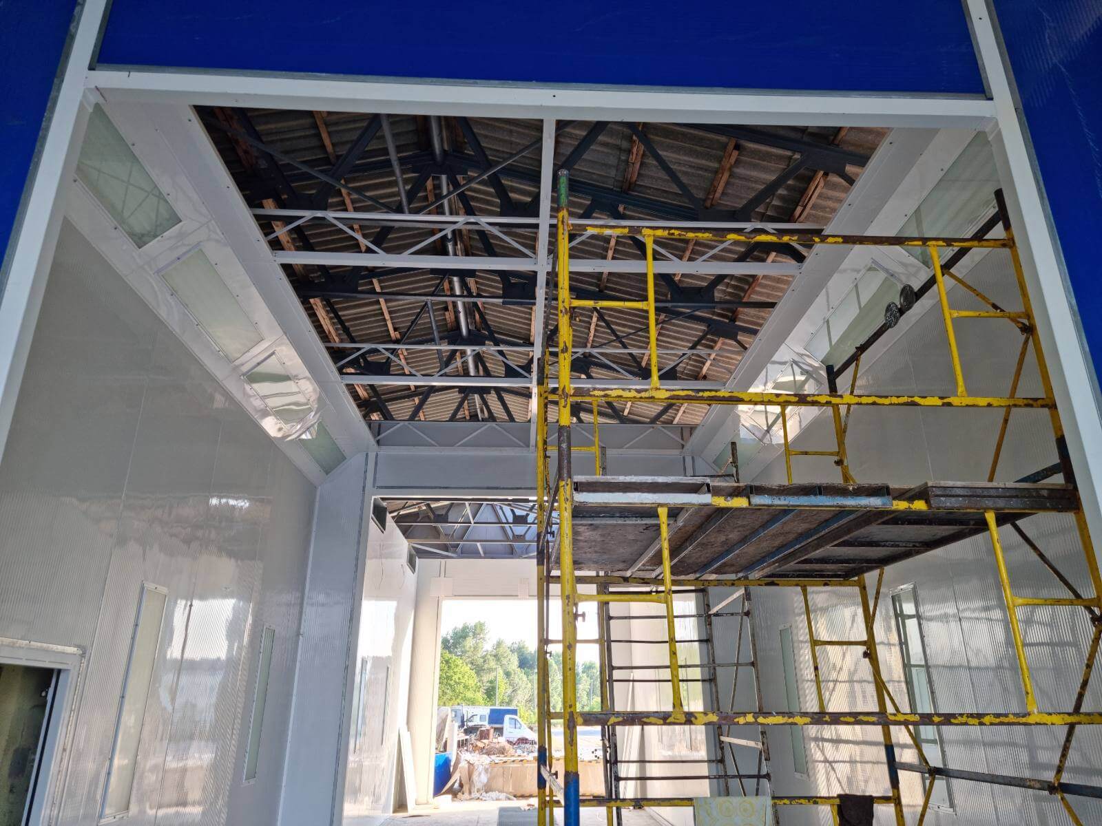 when the gates are open inside the premises, the posts work as one large chamber, the automation system regulates two posts at the same time, which allows painting and drying large-sized items that cannot be accommodated in one post. - the painting chamber (painting and drying) was designed in such a way that the groups of supply and exhaust ventilation, as well as air heating, were in one room, the camera cabin was in another room, and the controls were in a dedicated room.