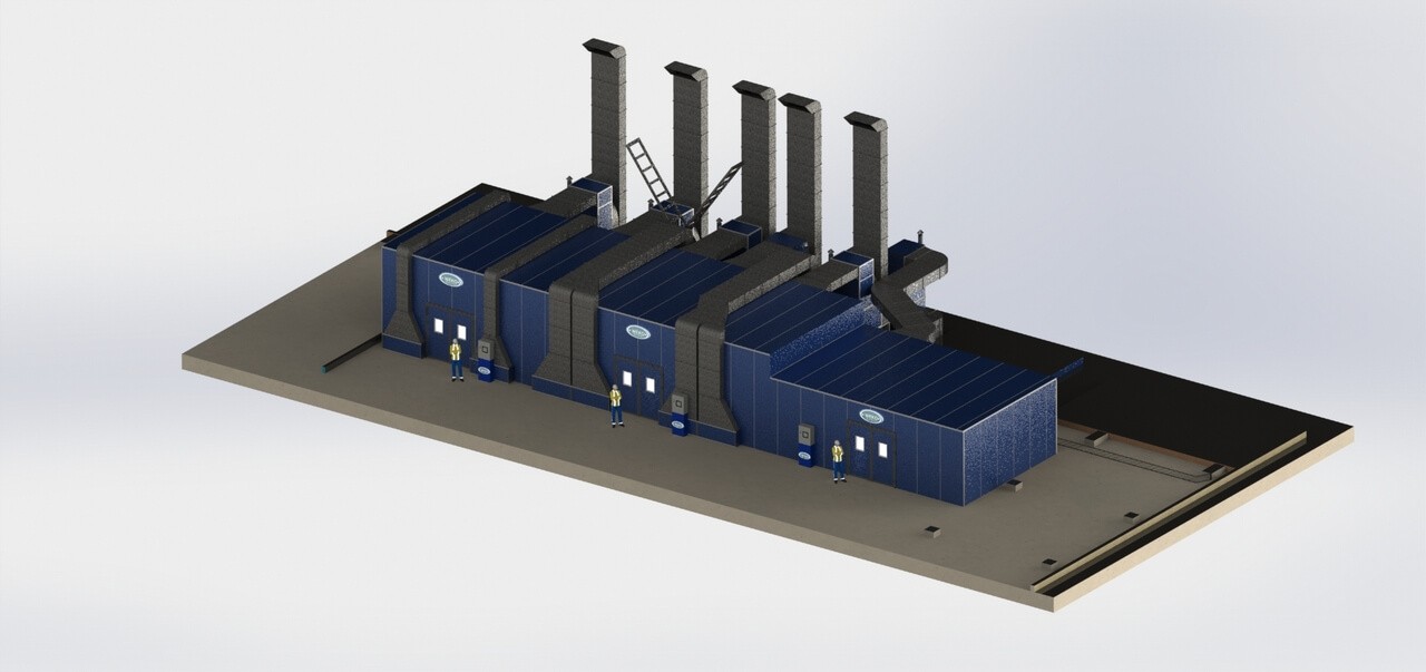 All three chambers are integrated into a single complex with shared partitions and hermetic sliding gates, ensuring the product remains within a clean zone throughout processing. The complex is installed on a flat concrete platform. The degreasing and drying chambers are designed for installation without foundation preparation, with exhaust air diverted through side ventilation ducts. The painting chamber features a dual-mode air extraction system (side and underground ducts), improving aerodynamic performance in the work zone. This approach eliminated the need for labor-intensive construction of underground ducts, significantly reducing project timelines.