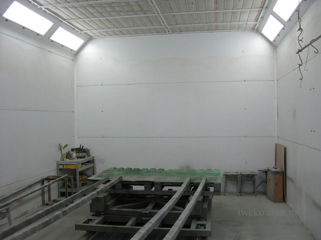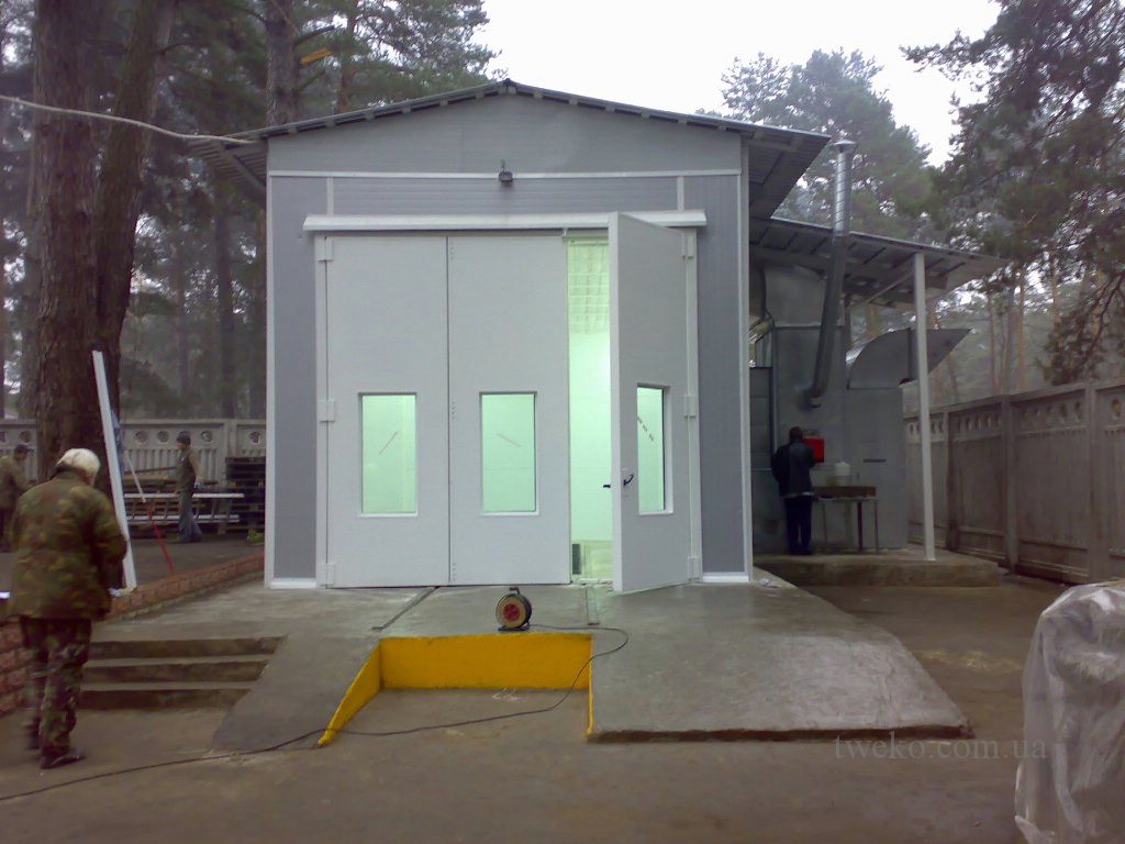 TWEKO designed and implemented an outdoor spray booth for SE «Ukroboronservis» (Kyiv, Ukraine) in July 2009. The booth, intended for applying and drying coatings on military-technical products, was installed in an open space and equipped with a unique transportation system and a winter operation mode.