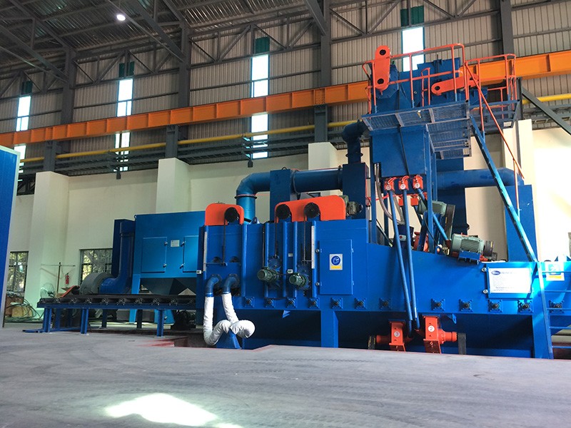 - Suspended shot blasting machine with a dead end chamber with shot blasting machines.